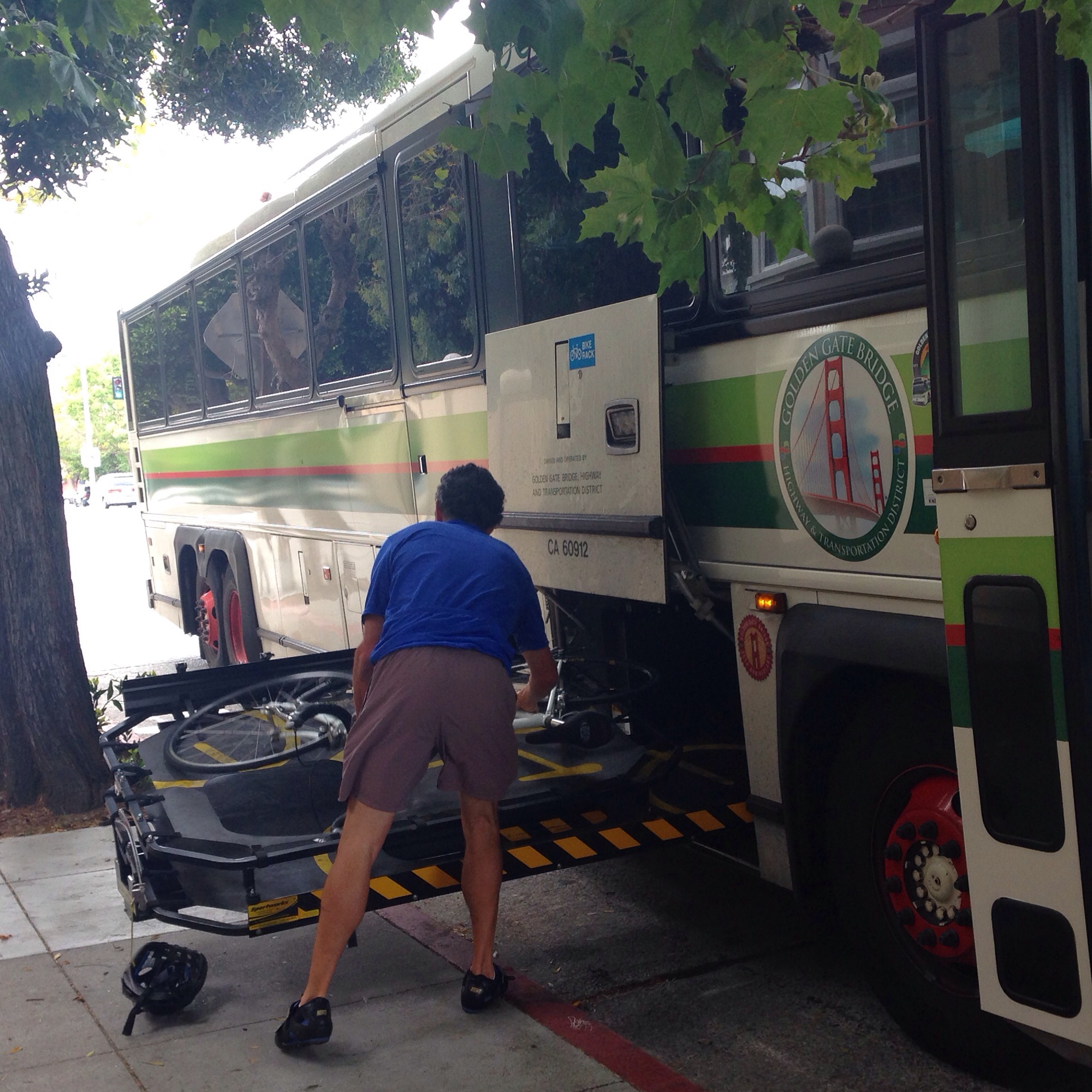 Ofta när jag är ute och reser, funderar jag över hur cyklingen fungerar där jag är. I San Francisco imponerades jag av hur lätt man tar med sig cykeln på bussarna. På vissa bussar fällde man själv ner ett ställ framtill på bussen och ställde sin cykel där, medan chauffören satt kvar på sin plats och tittade på.