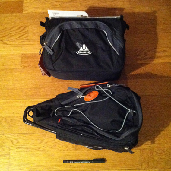Nu är det två månader kvar tills jag ger mig ut på min cykelresa. Det hela har känts lite overkligt, men nu börjar bitarna falla på plats. Häromdagen köpte jag mina cykelväskor, en att ha fram på styret och en som man fäster bak på sadelstolpen. Tillsammans ger de mig ett utrymme på ca 19 liter. Jag provpackade lite när jag kom hem; ett par cykelbyxor, en cykeltröja och min regnjacka fyllde ca 1/3 del av en av väskorna. Det får bli till att packa rationellt. Alla tips mottages tacksamt!